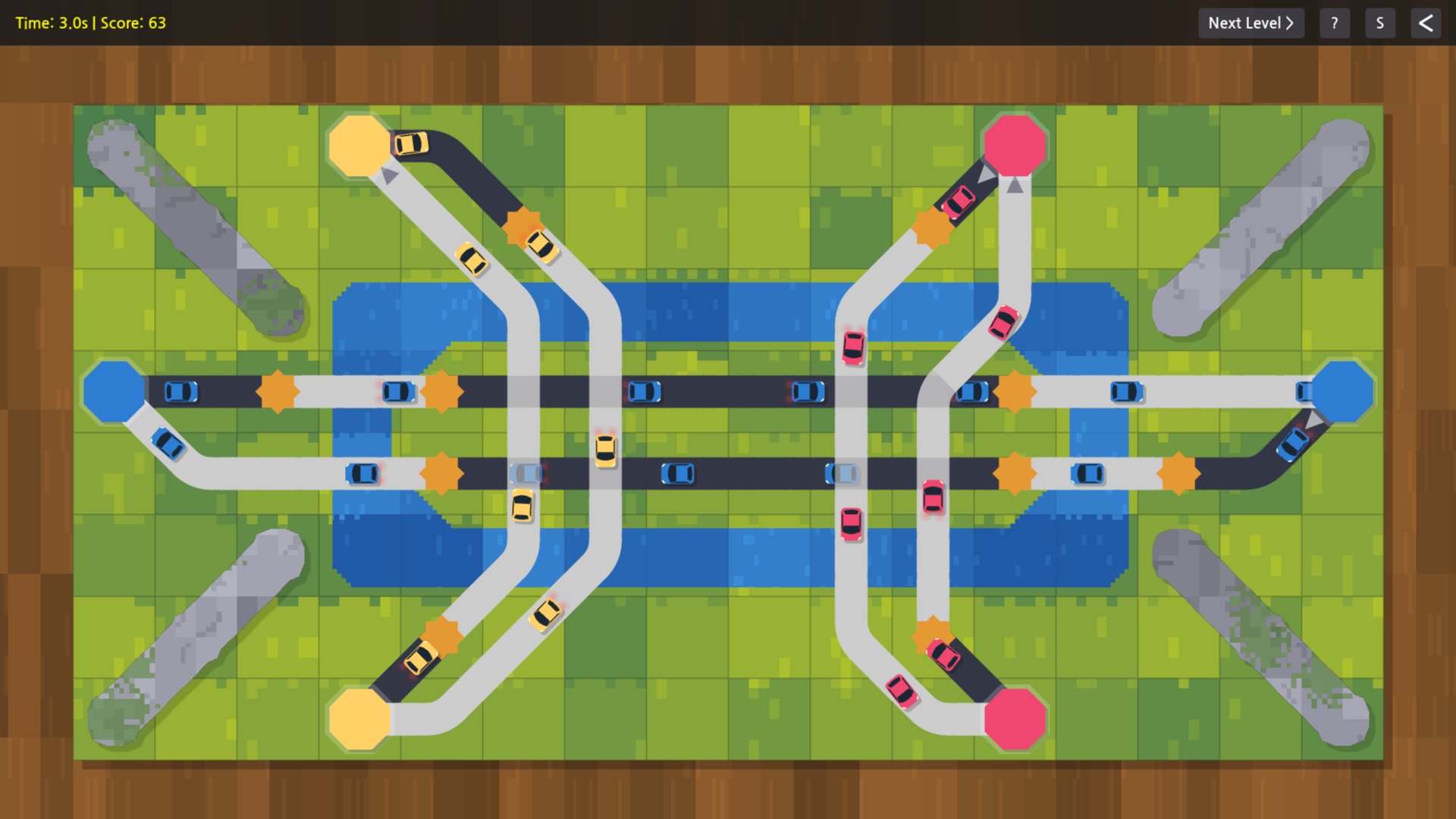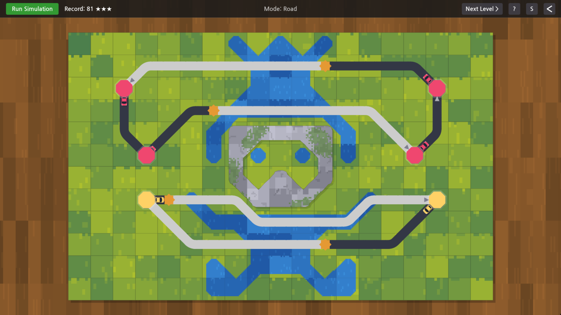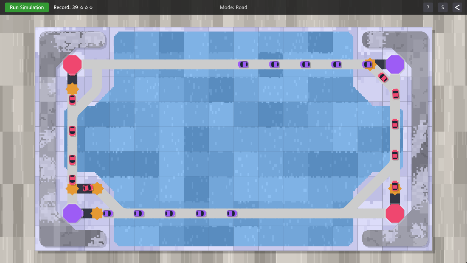 Once all loops are complete, run the simulation to watch the cars follow the routes you've built and earn points.